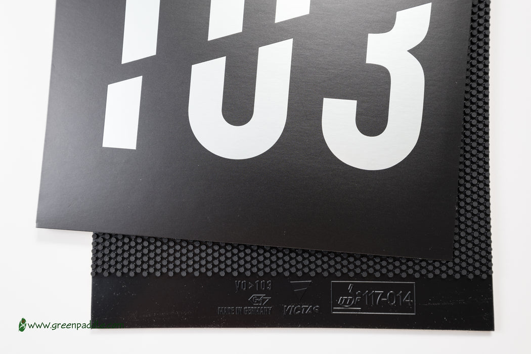 VO > 103 is the new benchmark for variable and dangerous short pips-out attacking! Following a thorough testing and development phase, the Japanese VICTAS material experts succeeded in designing a real offensive all-rounder displaying its strengths in any playing situation. The new 40° High Energy Tension offensive sponge of the VO > 103 with a fine catapult effect provides for excellent control both in attacking situations and passive play. The new pips design optimizes spin development and also produces great pips-out effect and a dangerous trajectory when blocking.