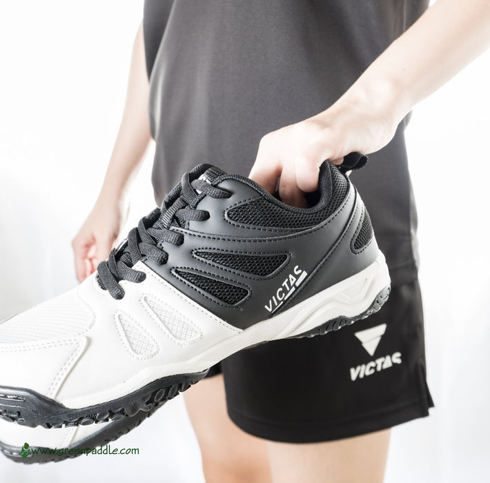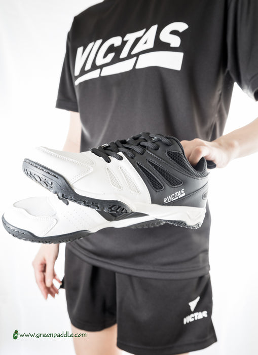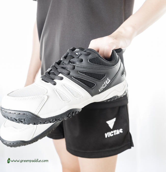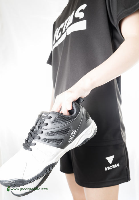 Modern and light-weight table tennis shoe with large mesh inlets for the optimum breathability. The innovative outer material mix gives the shoe a low overall weight and therefore high flexibility and improved stability. The optimized heel padding increases wear comfort and the grippy “NON-MARKING” outer sole ensures very good grip and stable support even on slippery hall floors.